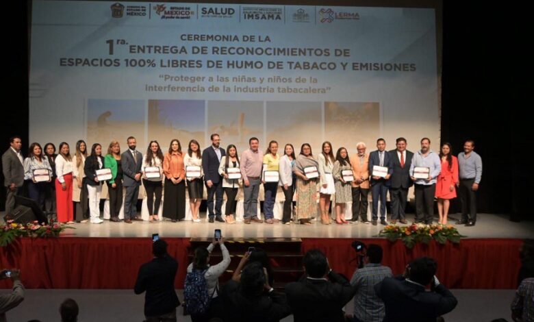 Como parte de una política de fomento sanitario el Gobierno del Estado de México, a través de la Secretaría de Salud y del Instituto Mexiquense de Salud Mental y Adicciones (IMSAMA), entregó 355 Reconocimientos de Espacios 100% Libres de Humo de Tabaco y Emisiones a establecimientos, ambientes, empresas e instituciones educativas que promueven el cumplimiento de mejores prácticas en salud.